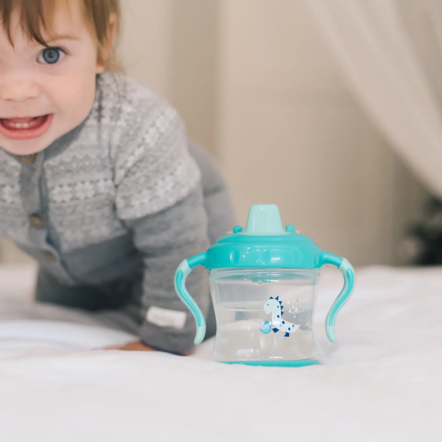 Za lako i brzo učenje korišćenja šolje i odvikavanja od flašice – predlažemo Elfi neprosipajuću šolju sa tvrdim piskom i poklopcem.