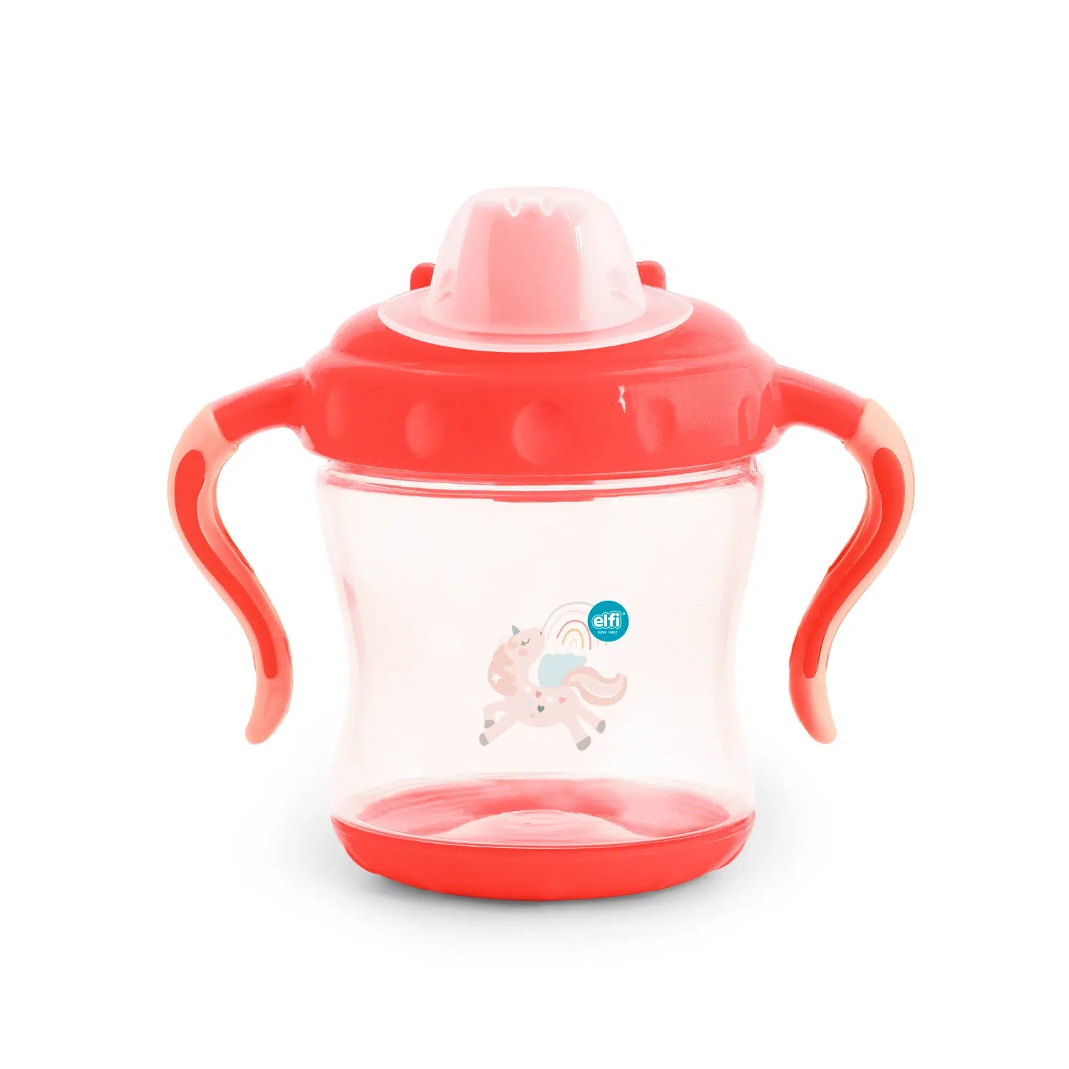 Za lako i brzo učenje korišćenja šolje i odvikavanja od flašice – predlažemo Elfi neprosipajuću šolju sa tvrdim piskom i poklopcem.