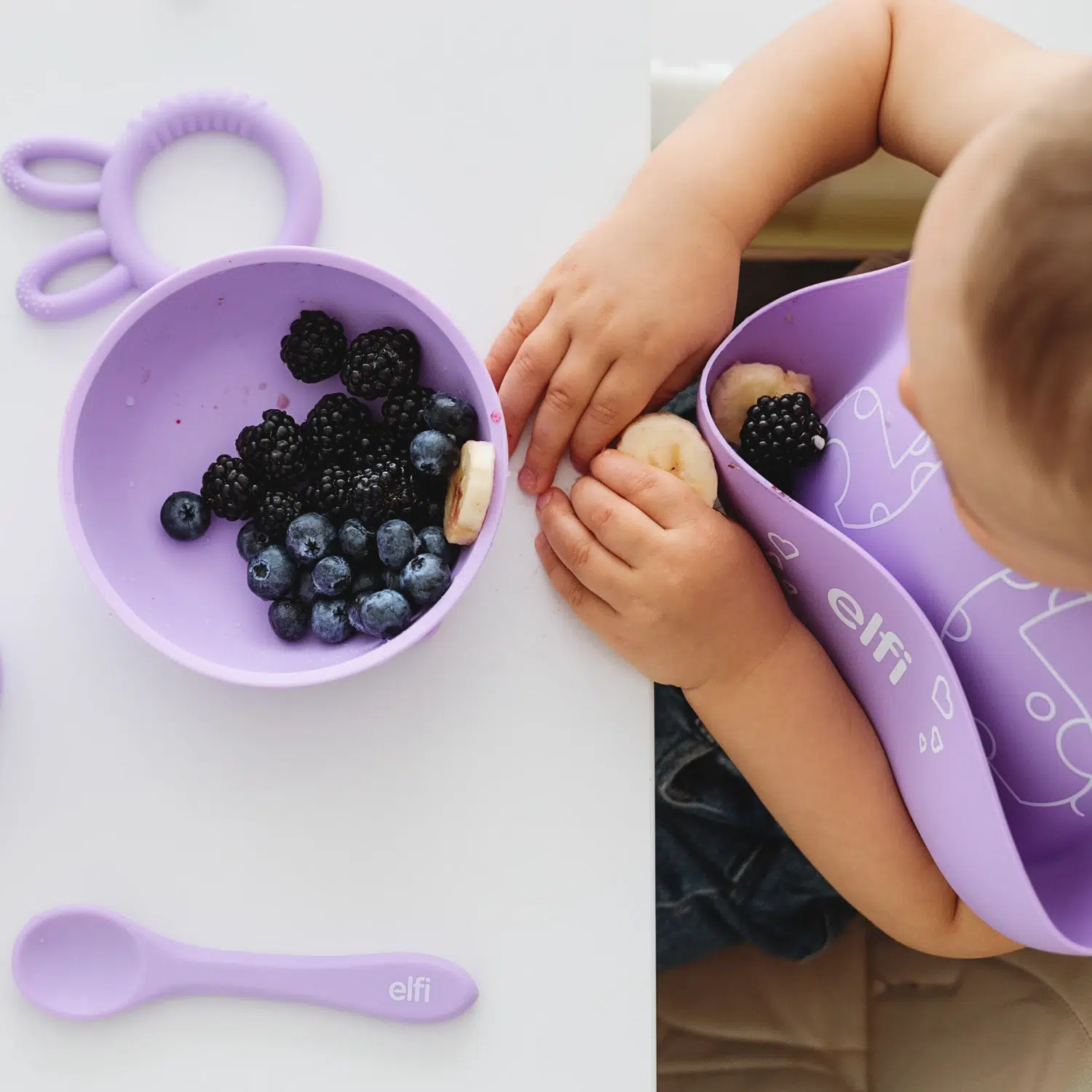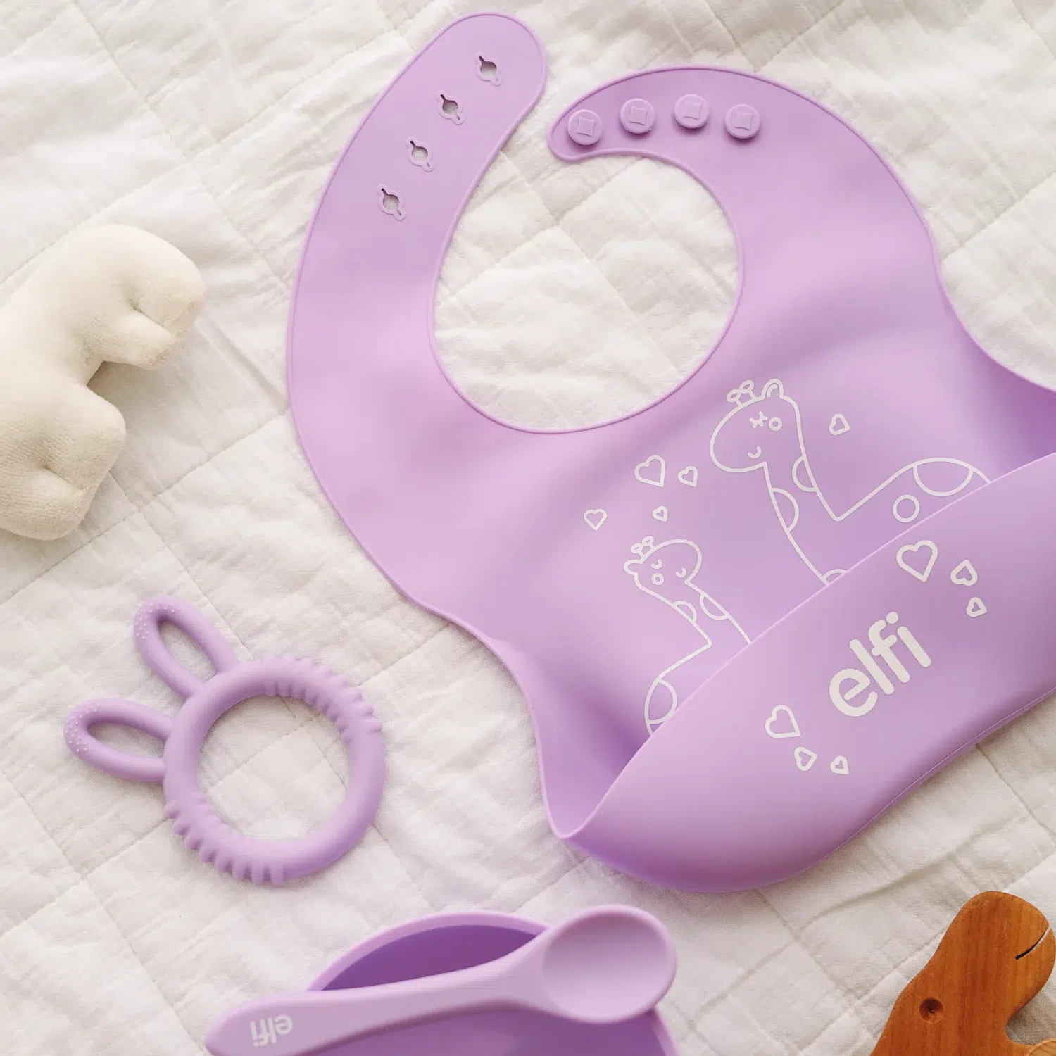 Elfi silikonska portikla sa dubokim džepom sprečava da hrana završi u krilu ili na podu, pa obroci prolaze bez nerviranja i presvlačenja. Izrađena od mekog BPA free silikona, prijatna je na dodir i ne iritira bebinu kožu.