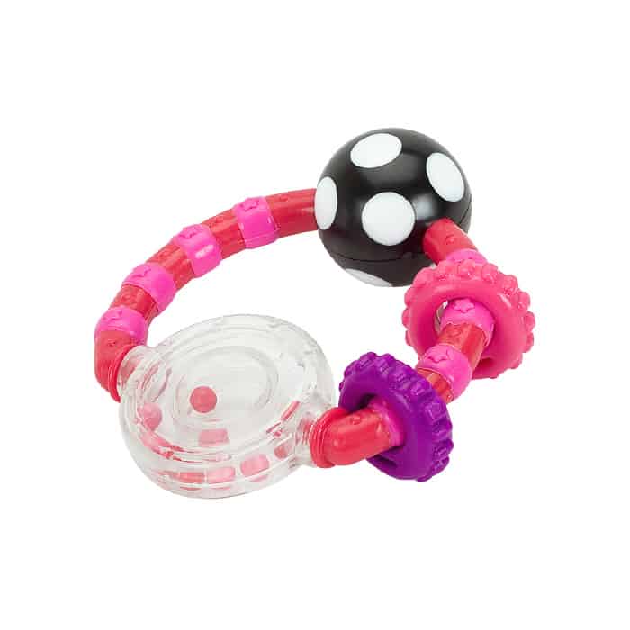 Šarena, veselih boja, sa delovima koji se pomeraju, prijatnog zvuka i odlična za privlačenje bebine pažnje – baš to je Elfi zvečka JOY.