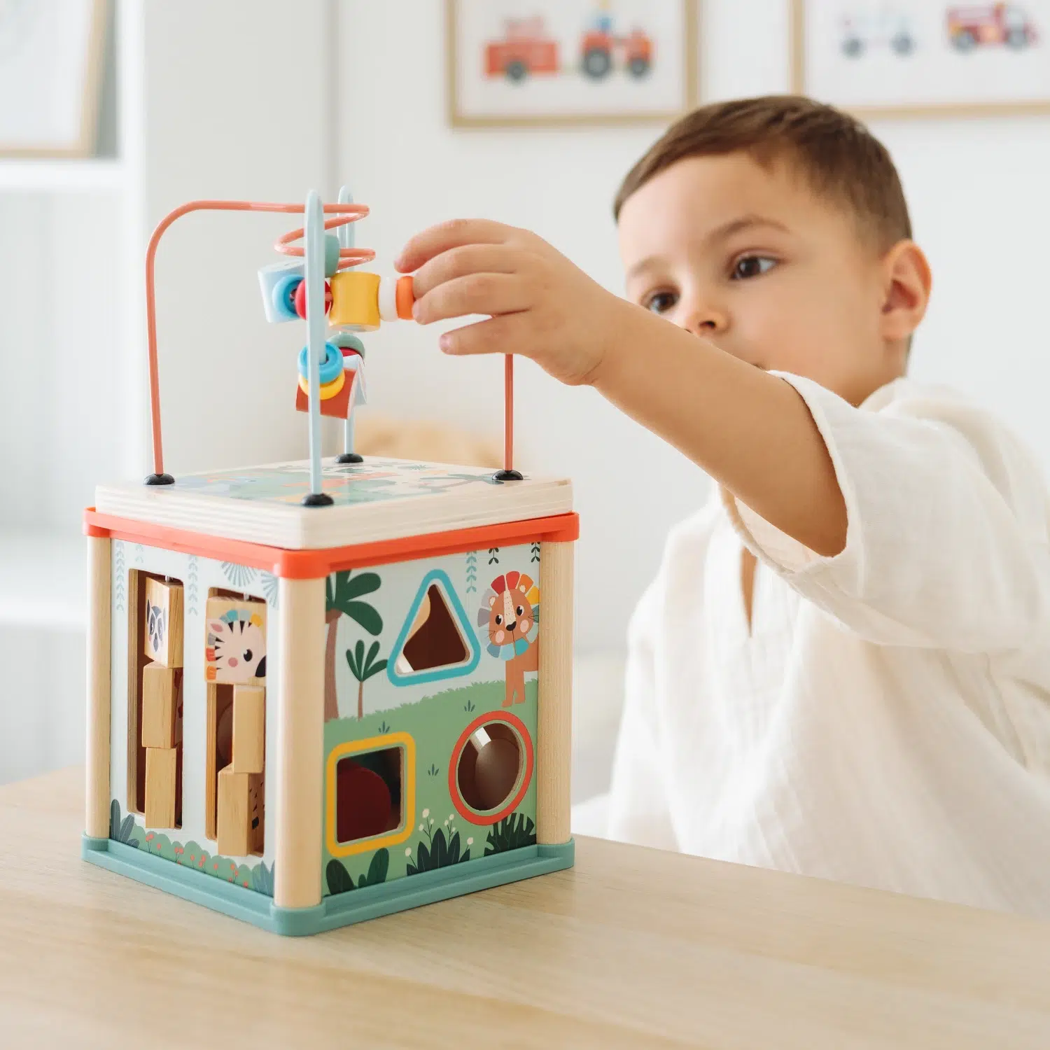Roditelji znaju da deca najviše uče kroz igru. Aktiviti drvena kocka je kao Didaktička igračka posebno osmišljena da razvija finu motoriku, koncentraciju i logičko razmišljanje, dok deca uživaju u živopisnim ilustracijama šumskih prijatelja. Drvo je toplo na dodir, izdržljivo i lepo i nakon mnogo korišćenja – igračka može godinama da prati dete i ostane odlična i za mlađe brata ili sestru.