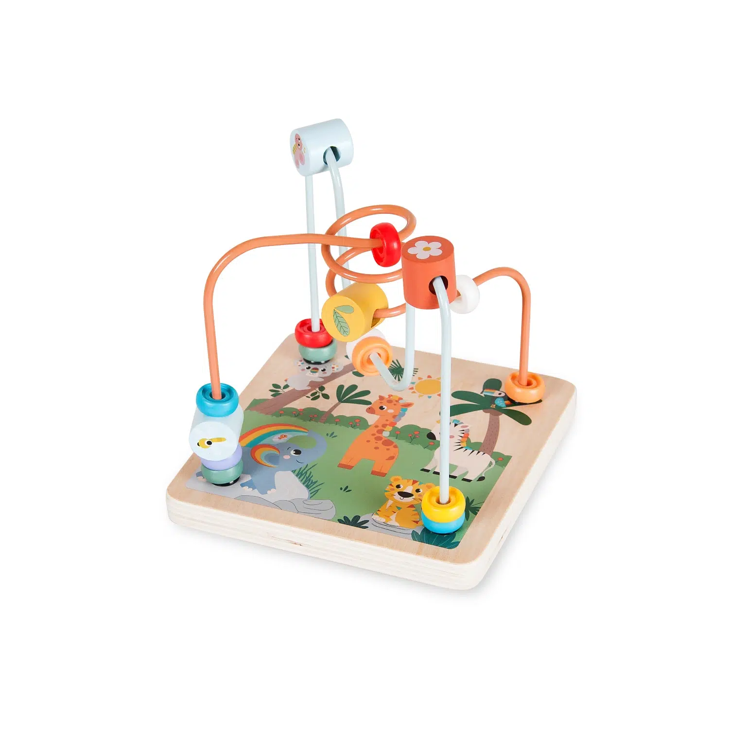 - Lavirint sa perlicama: Deca pomeraju šarene perlice duž zakrivljenih staza, razvijajući koordinaciju ruku i očiju, kao i koncentraciju. Lavirint se lako može ukloniti i koristiti čak i kao zasebna igračka.