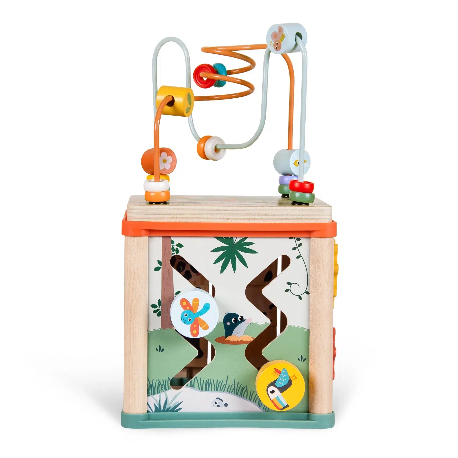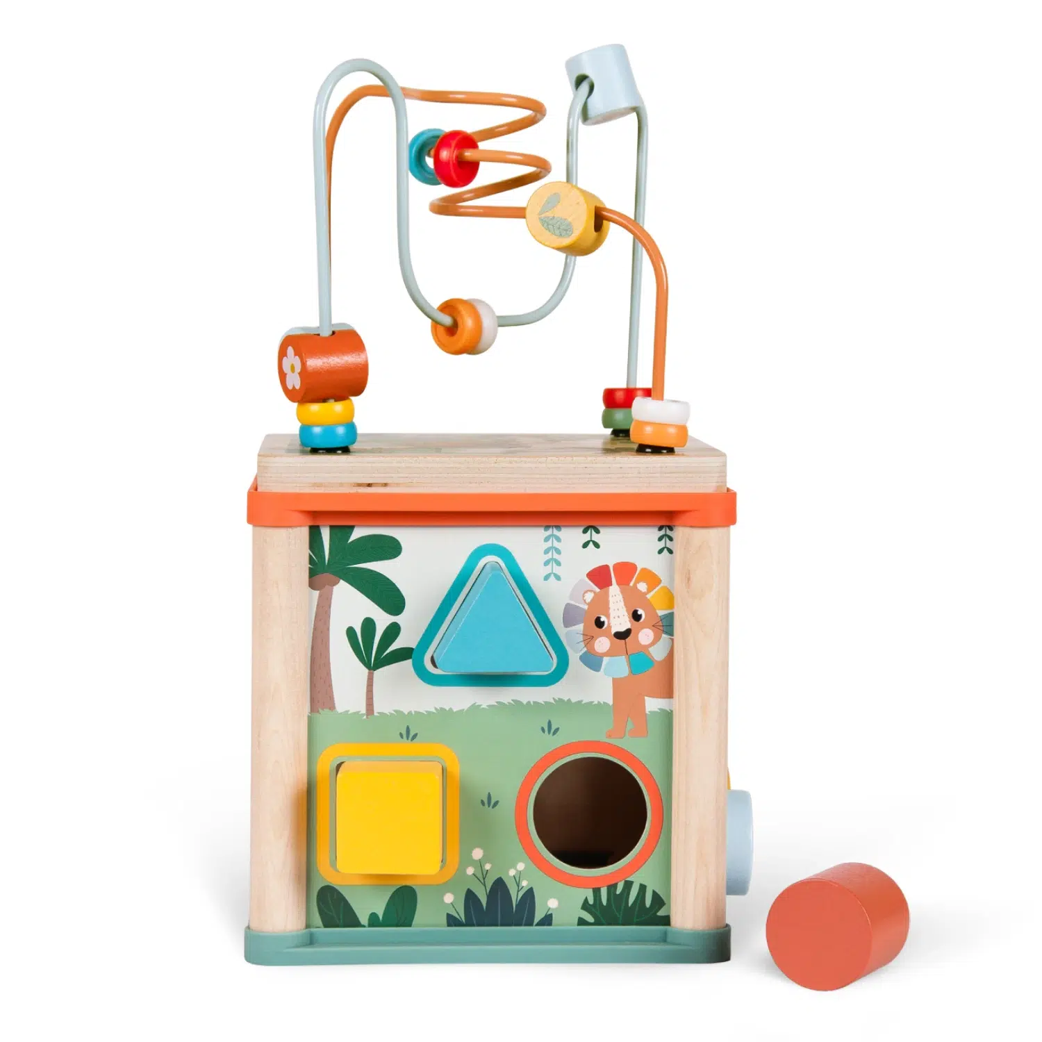 Pino Aktiviti kocka – Šumska avantura je interaktivna drvena igračka koja kroz šarene aktivnosti razvija motoriku, logičko razmišljanje i kreativnost.