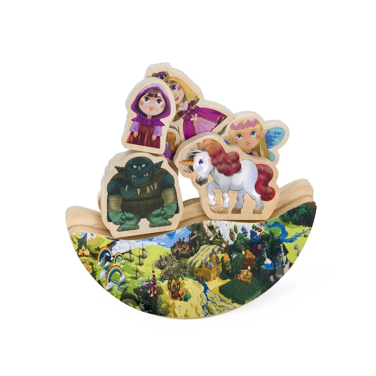 Deca postavljaju drvene figurice na postolje u obliku klackalice, pokušavajući da održe ravnotežu. Karte određuju koji se lik dodaje sledeći – ponekad vila, ponekad vitez, a ponekad i zmaj. Ako se konstrukcija zaljulja i sruši, svi se smeju i počinje novi pokušaj. Zahvaljujući trima vrstama kartica, svaka partija je drugačija i izazovna na svoj način – deca vežbaju preciznost, logičko planiranje i saradnju.