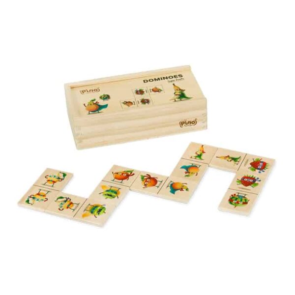 Pino drvene domine za decu – Voće podstiču decu da kroz igru prepoznaju i povezuju različite vrste voća. Veseli motivi i žive boje čine igru zabavnom i edukativnom. Ilustracije je osmislio Dušan Pavlić. Igra razvija pažnju, pamćenje i logičko razmišljanje, a izrađena je od kvalitetnog drveta testiranog po evropskim standardima bezbednosti.