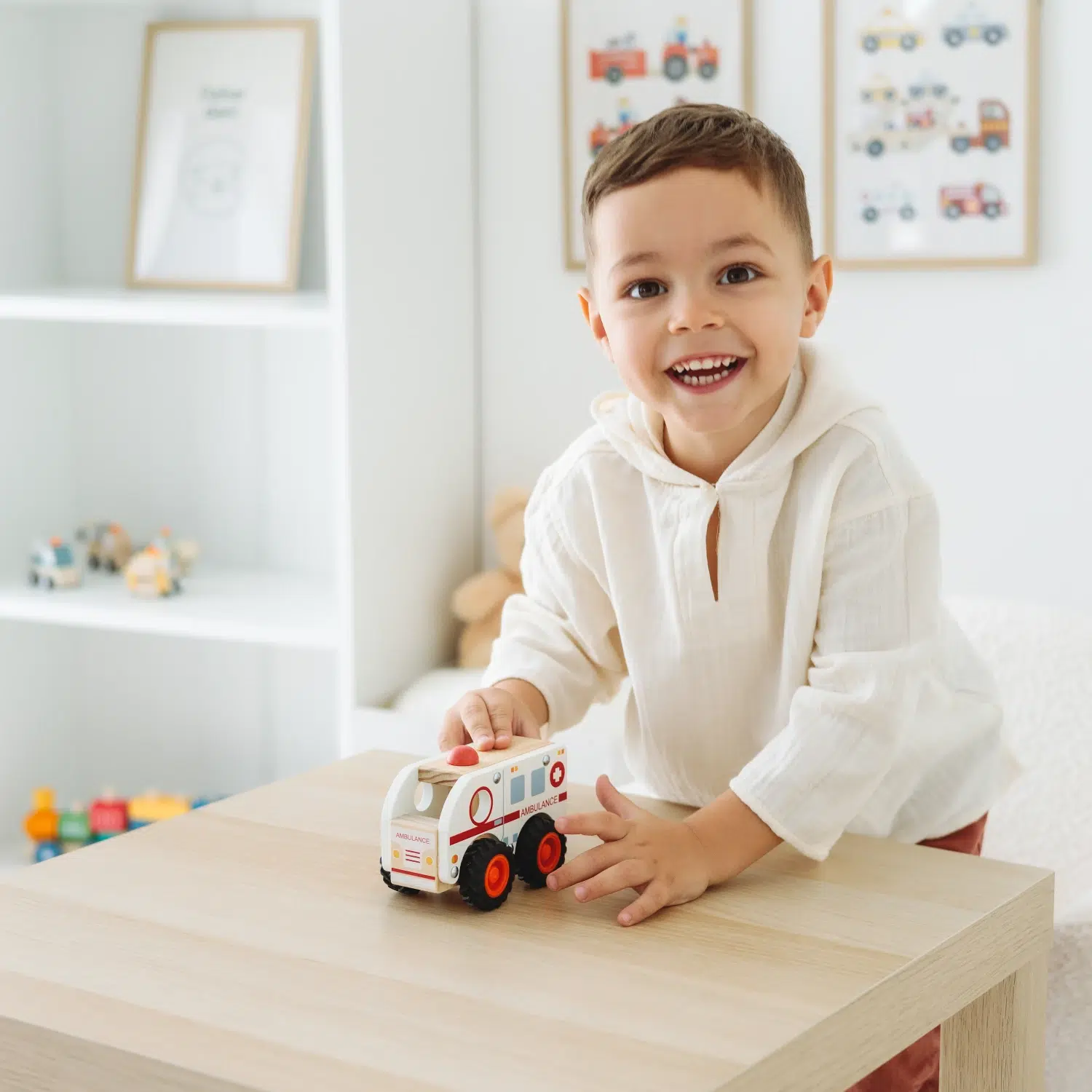 Ako tražite poklon koji uči dete da bude pažljivo i maštovito, Pino drvena Hitna pomoć je pravi izbor. Jednostavna, sigurna i uvek spremna za akciju – baš kao i mali junaci koji je voze.