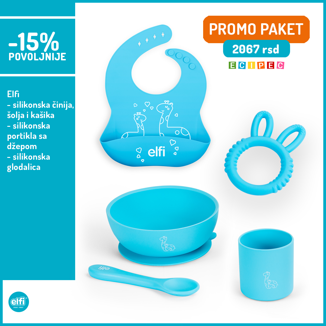 Promo paket - Elfi Silikonski set za hranjenje Kit, Plavi sadrži: