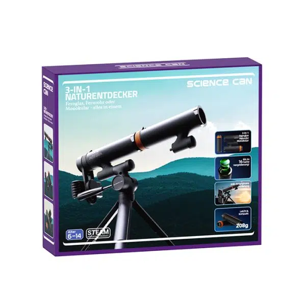 Pomoću Science Can Multifunkcionalni 3 u 1 Teleskopa, mali istraživači mogu posmatrati i otkrivati svet u svim njegovim detaljima, od malih insekata do zvezda na noćnom nebu. Ovaj set uključuje dva monokulara koji se mogu koristiti kao dvogled ili teleskop sa uvećanjem do 16x, pružajući deci priliku da istraže i uče o svojoj okolini kroz igru.
