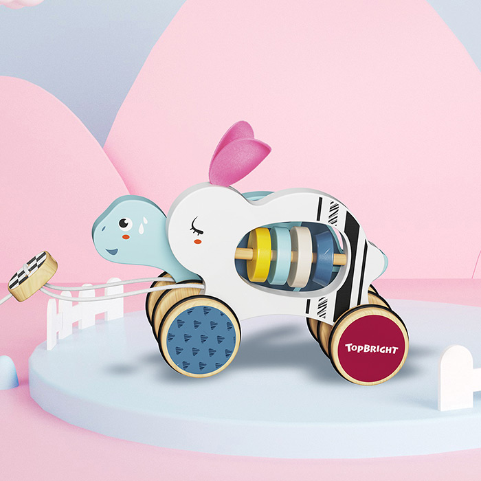Top Bright Igračka na povlačenje Zec i kornjača podstiče decu od 12 meseci da uče da hodaju kroz zabavnu trku između zeca i kornjače.
